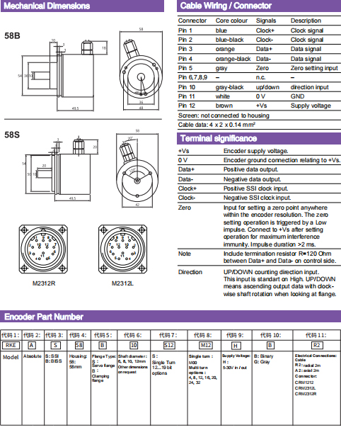 | ○ | 空載電流:≤ 50mA(24VDC) | ○ | 接口:SSI或 BiSS | |||