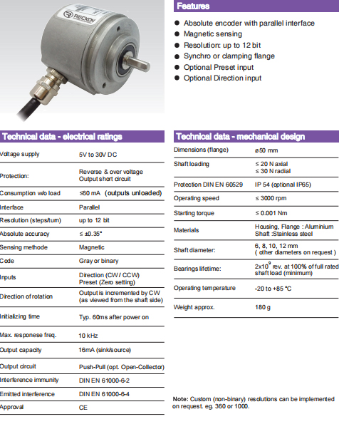| ○ | 分辨率(脈沖數/圈):可達 12 位 | ○ | 絕對精度:≤ ±0.35° | |||