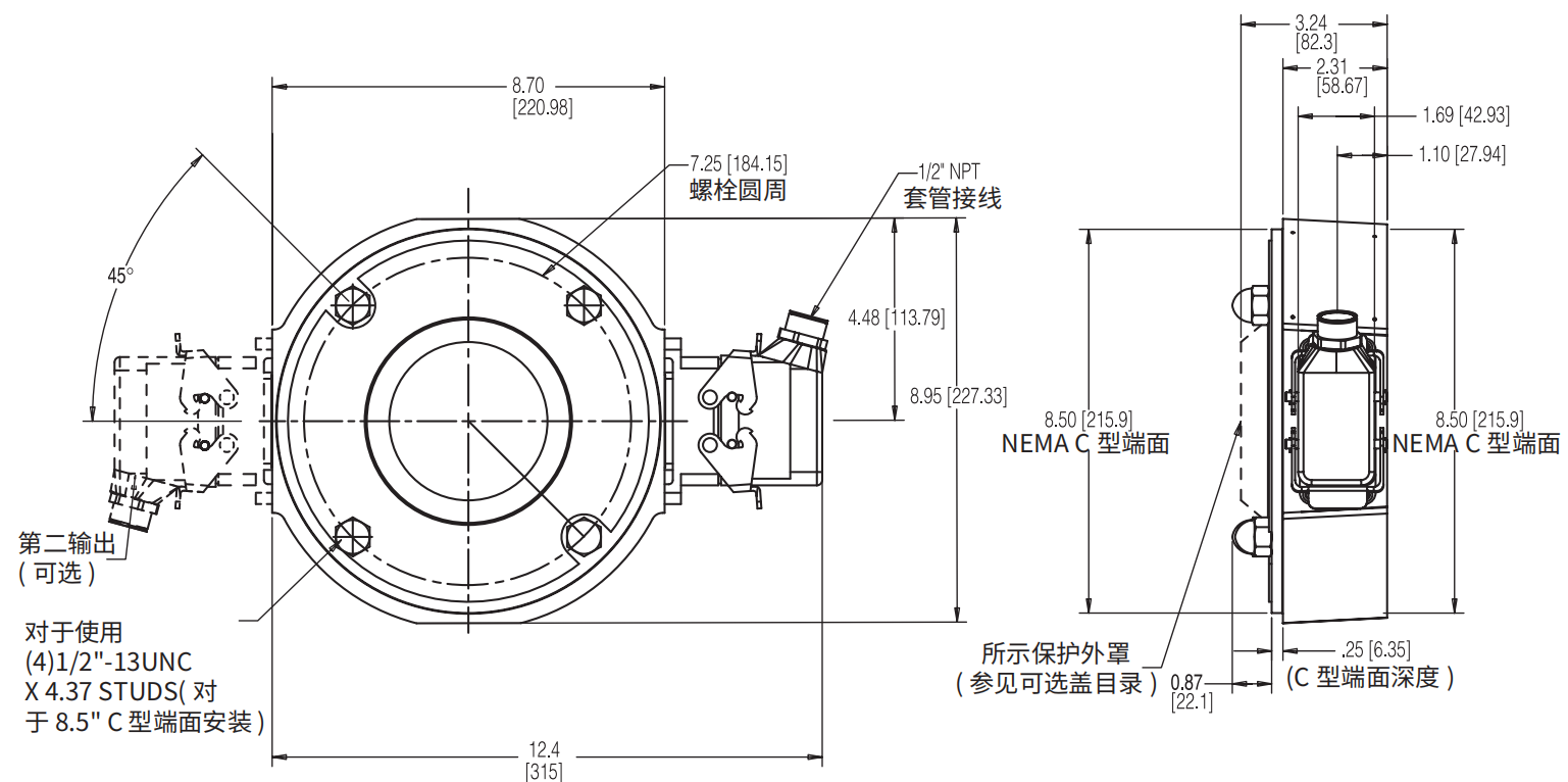 | ○ | 外徑:不帶連接器 8.7" (220. 98mm) | ○ | 孔徑:5/8" ~ 2-5/8" | |||
